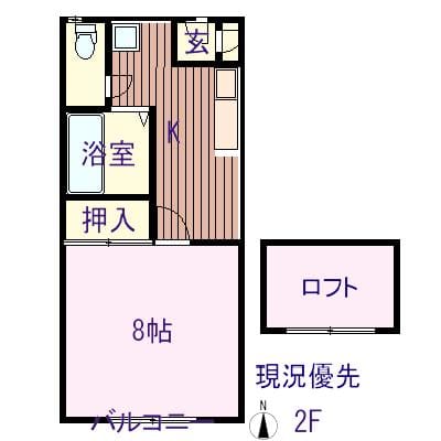 | 間取 | 1K | 間取詳細 | 洋8.ロフト洋4 |